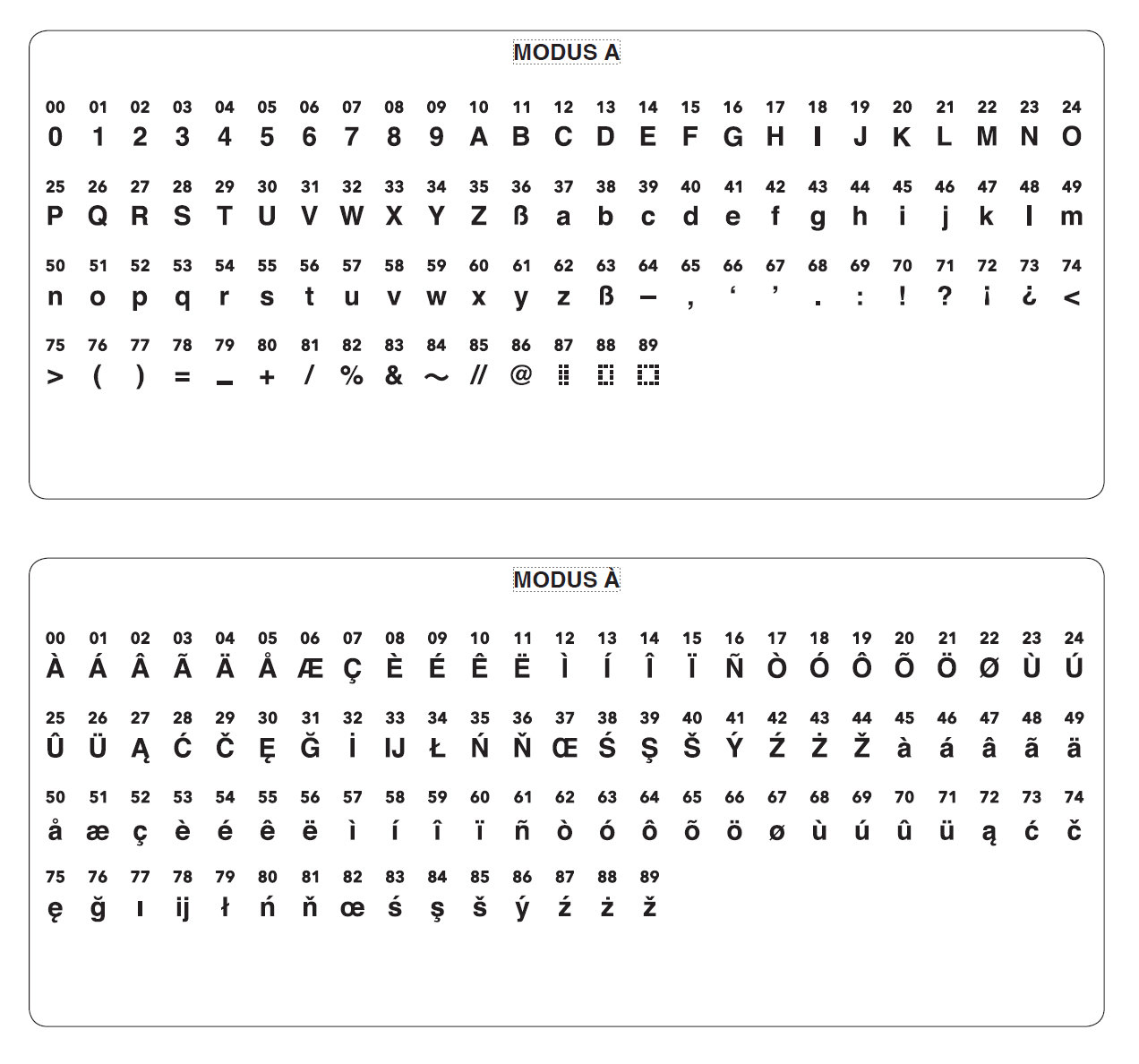 • Stichtabelle in der rechten Seite der Maschine